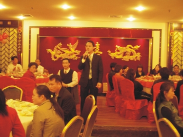 金鼠辭歲,福牛踢門。2009年1月20日下午,公司全體員工在萬綠大酒店歡聚一堂,共迎2009新春佳節。公司朱日楊董事長、朱榮業總經理、各部門負責人及我司河源區市場顧問均出席了本次團拜會暨迎新晚宴。