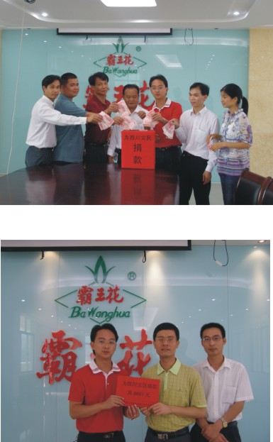 2008年5月12日四川省汶川縣發生的8.0大地震,深深地牽動著每一位中華兒女的心。廣東霸王花食品有限公司總經理朱榮業先生第一時間以個人名義向災區捐款1.6萬元,隨后并積極響應號召,組織員工捐款。短短一天時間,公司就募得賑災款8601元。截止2008年6月6日,霸王花公司員工累計向災區人民捐款24601元。另外,公司員工還通過手機積分捐贈、無償獻血等不同方式積極支援災區人民。多難興邦,霸王花公司全體員工衷心地祝愿受“汶川”地震影響的災區人民早日重建更加美好的家園。